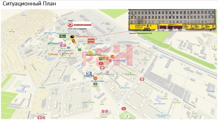 - помещение находится в активном месте города Каменка, рядом располагаются основные торгово-офисные центры города, оптовая продуктовая база, а так же фонтанная площадь –место отдыха жителей и гостей города;