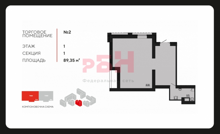 - Цена помещения 10.722.000 руб. (120.000р/кв.м.)