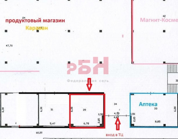 Реализуется в аренду торговое помещение на 1 этаже, расположенное у главного входа в ТЦ Окружной, напротив кассы продуктового магазина.